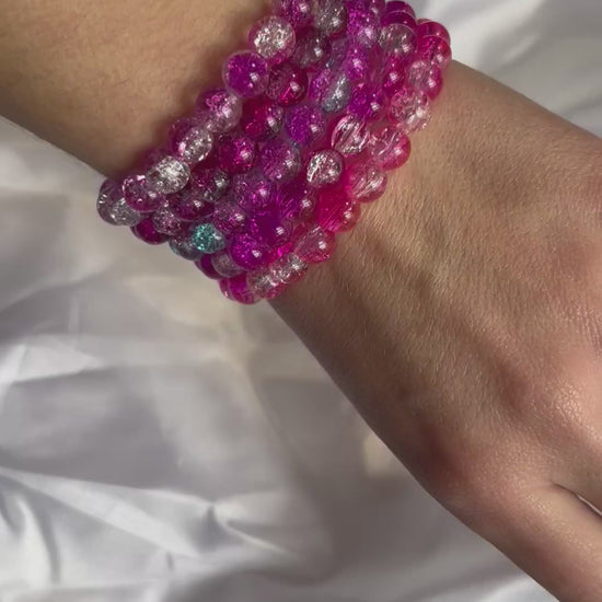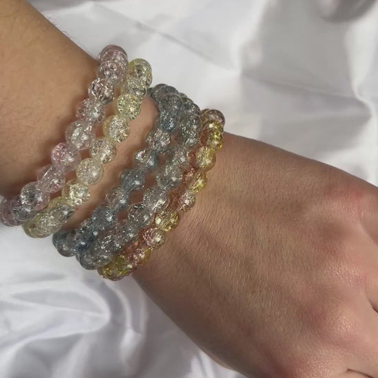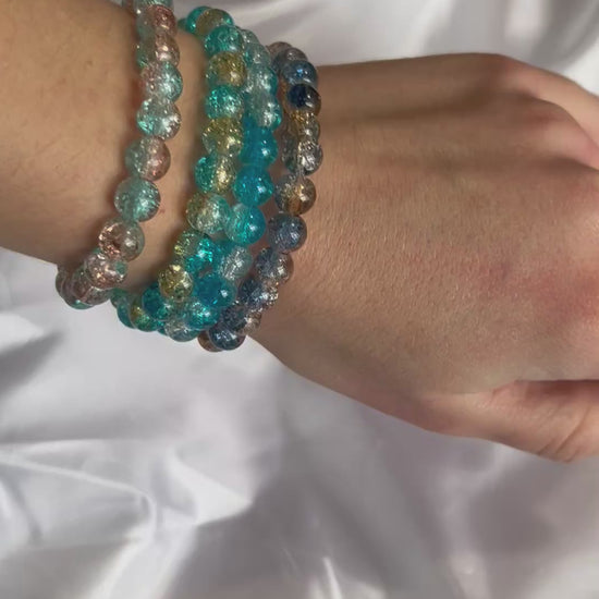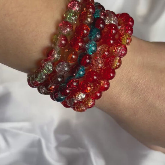 These crackled bead stretch bracelets are a colorful, lightweight accessory perfect for everyday wear. Made with durable glass beads featuring a sparkling cracked-glass effect, each bracelet offers eye-catching shine without the weight of real glass. With multiple color options available, these stretch bracelets are ideal for stacking, layering, gifting, or adding a pop of color to any outfit.