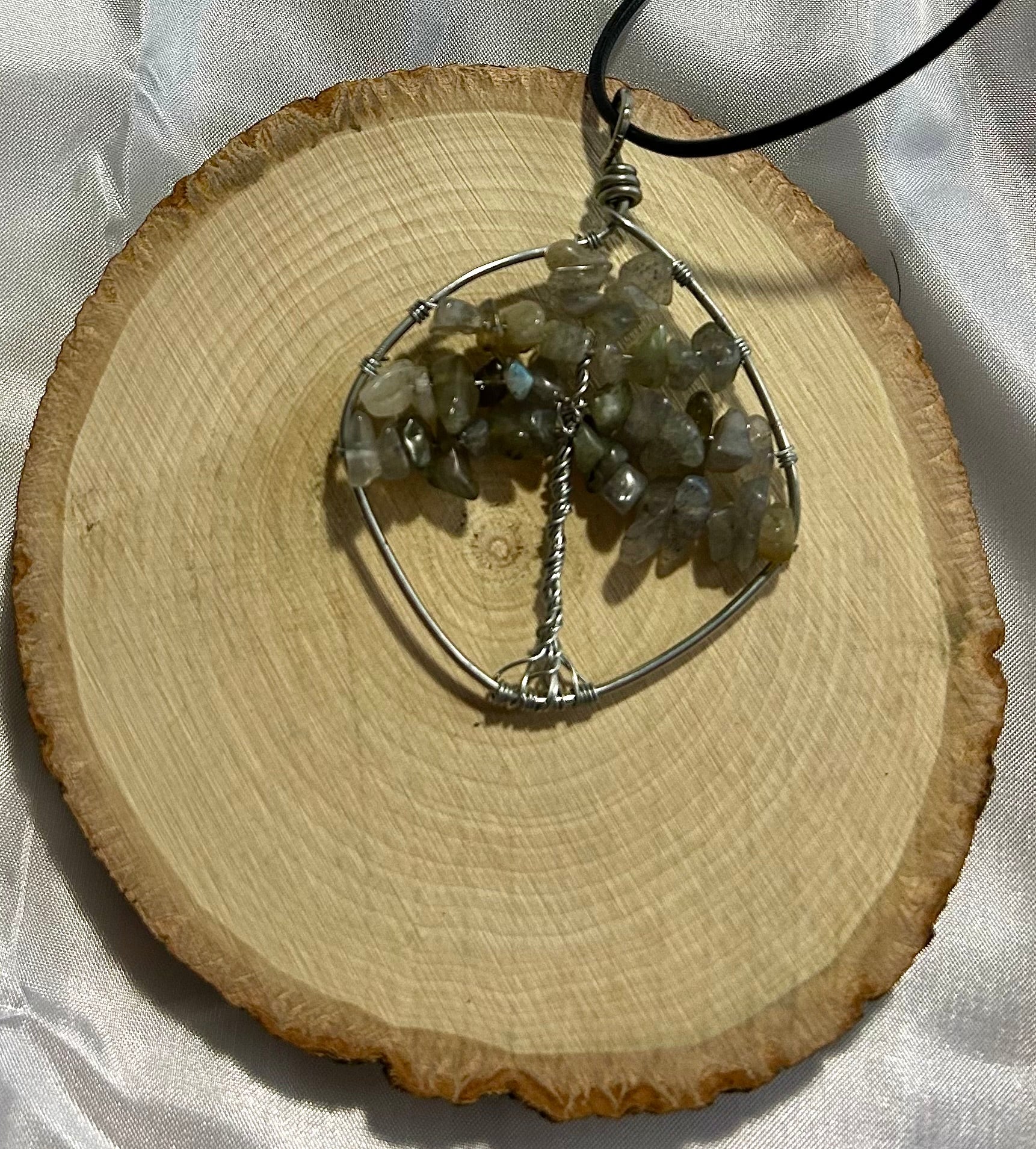 Smokey Quartz Tree of Life - Silver Wire on Black Leather Cord